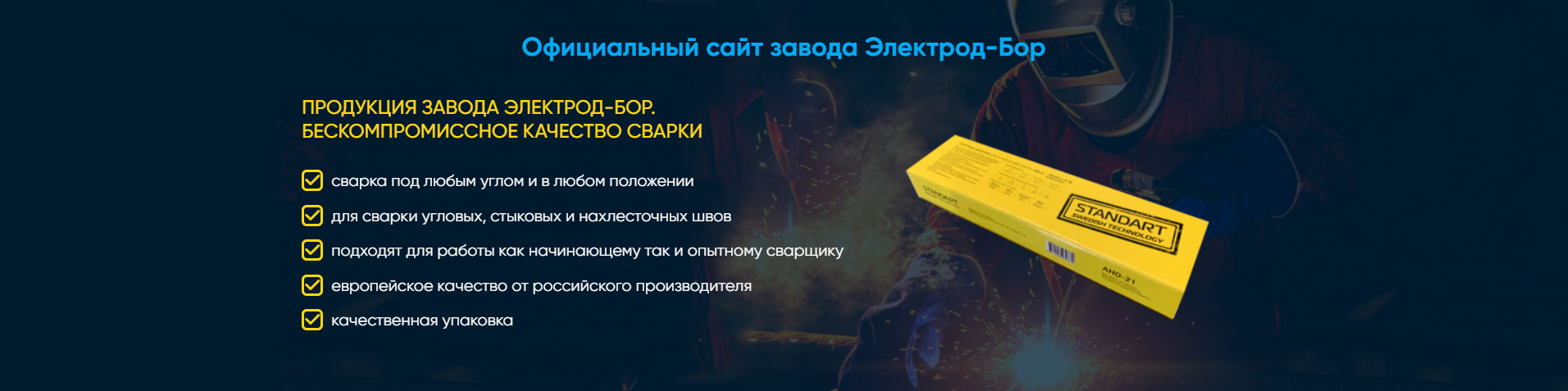 Компания Электрод-Бор имеет колоссальный опыт, накопленный в течении более полувековой истории производства электродов. Мы уделили не мало времени и ресурсов на исследование продукции западных коллег. Результатом чего стало внесение существенных изменений в самой технологии подготовки сварочной обмазки. Качественные, тщательно выбранные, отсортированные и подготовленные компоненты позволили получить электроды ничем не уступающие, а по некоторым параметрам превосходящие западные образцы.